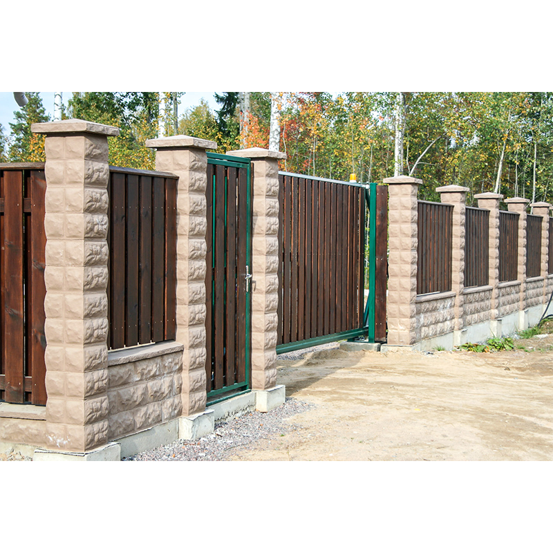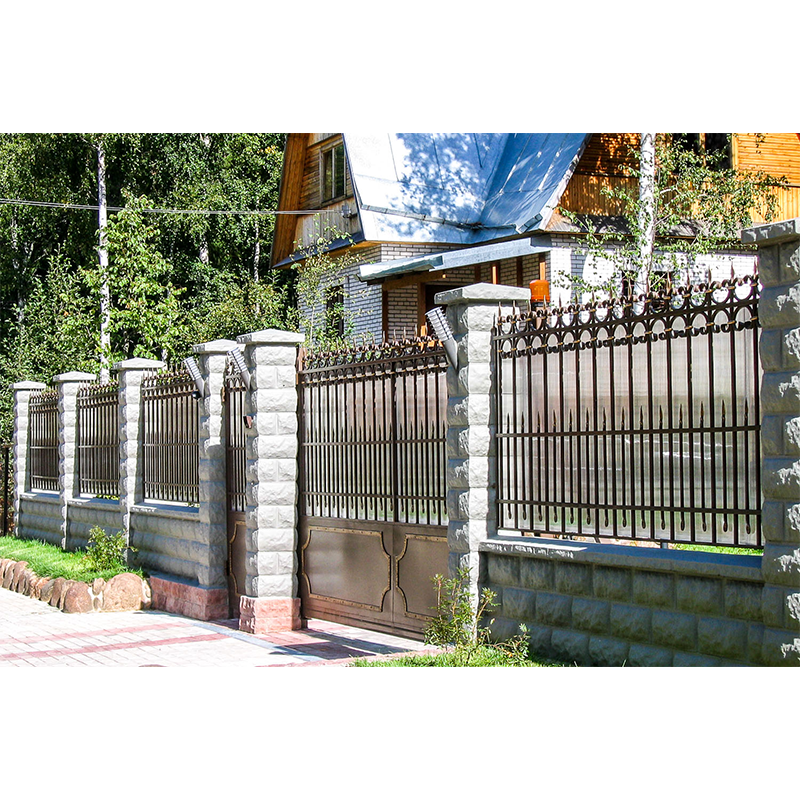Внутри полых блоков удобно монтировать кабель-каналы для установки освещения, звонков, камер наблюдения и т.д. Такого рода заборы являются единой монолитной конструкцией, устойчивой к механическим воздействиям.