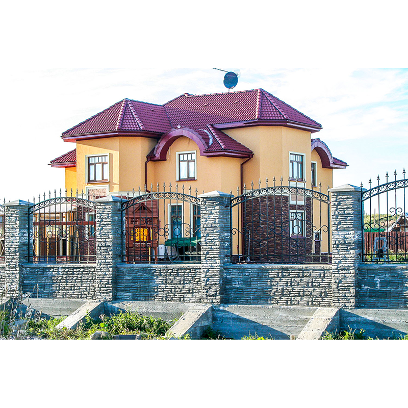 Установка блоков обходится намного дешевле, чем устройство кирпичного забора той же высоты. После монтажа забора блоки окрашиваются фасадной краской по бетону в цвет, который более всего подходит вашему дому.