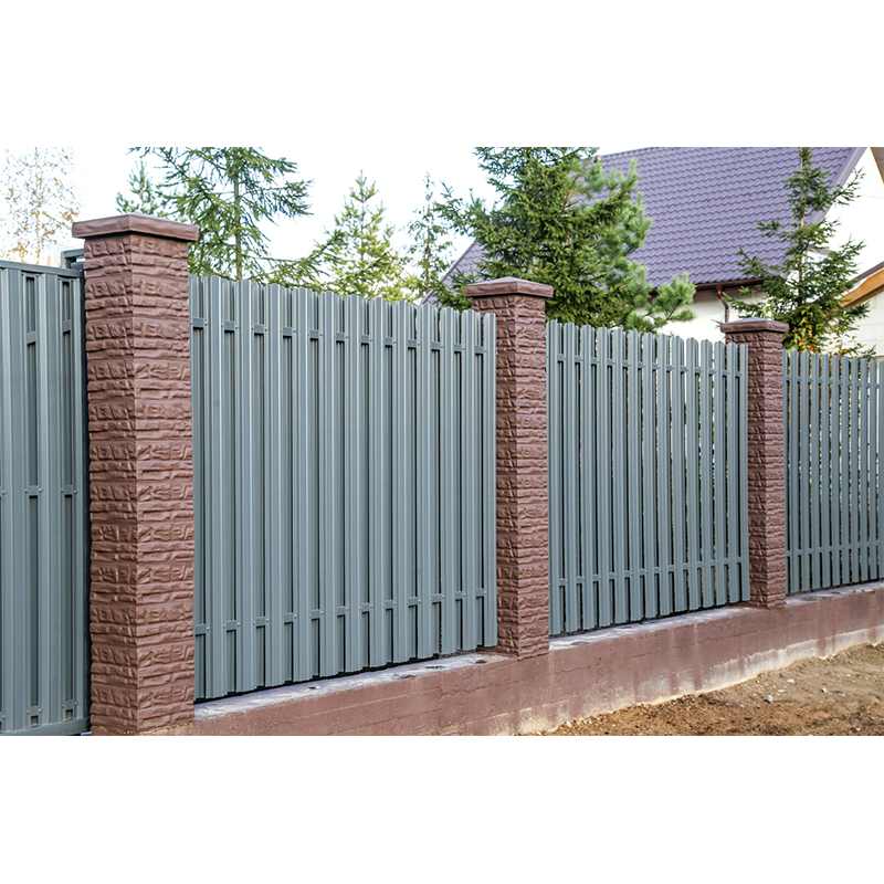 Установка блоков обходится намного дешевле, чем устройство кирпичного забора той же высоты. После монтажа забора блоки окрашиваются фасадной краской по бетону в цвет, который более всего подходит вашему дому.