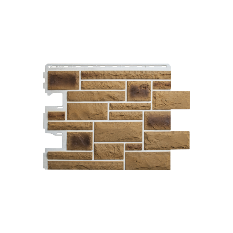 Фасадная панель под камень из коллекции Пражский камень от Альта-Профиль. Оригинальная кладка из пластин разного размера, контрастные швы, рельефная фактура и цветовые акценты создадут неповторимый образ вашего дома. Особая форма панелей позволит реализовать различные интересные архитектурные идеи. Панель изготовлена из полипропилена методом литья под давлением, имеет небольшой вес, поэтому не создает дополнительной нагрузки на несущие конструкции. Материал устойчив к грибку, плесени и коррозии. За счет ребер жесткости и увеличенной толщины (26 мм), панели устойчивы к механическим и температурным воздействиям, не деформируются. Многослойное окрашивание позволяет добиться неравномерного оттенка, подчеркивая природную текстуру натурального камня, надежно защищает от УФ-лучей, обеспечивая сохранность цвета долгие годы. Фасадные панели могут использоваться как для оформления фасада целиком, так и для облицовки фундамента, выделения отдельных деталей. Предлагаем также все необходимые комплектующие для панелей Альта-Профиль, которые придадут законченный внешний облик и дополнительный шарм фасаду. Купить фасадную панель Пражский камень Пшеничный от производителя Альта-Профиль по выгодной цене вы можете в нашем интернет-магазине Удачная покупка. Наши опытные менеджеры рассчитают необходимое количество материала и помогут с выбором комплектующих.