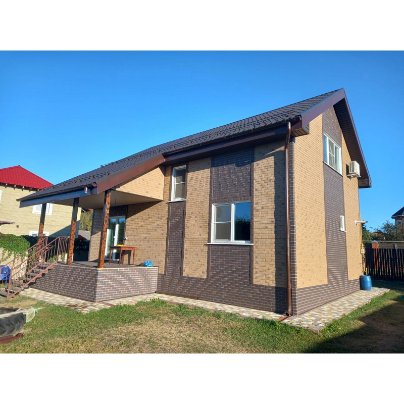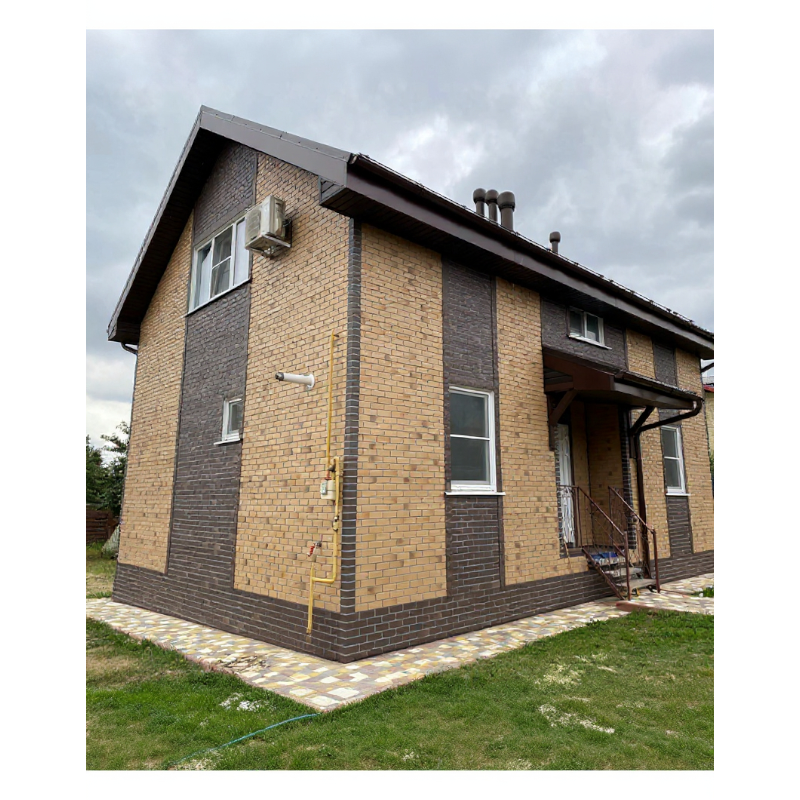 Фасадная панель под натуральный кирпич с имитацией ложковой кладки из коллекции BERG от Деке. Фактурная поверхность и белые контрастные швы придают панелям максимальное сходство с натуральным кирпичом. Панель изготовлена из полипропилена методом литья под давлением, имеет небольшой вес, поэтому не создает дополнительной нагрузки на несущие конструкции. За счет специальной трехступенчатой системы окраски, материал невосприимчив к УФ-лучам и атмосферным осадкам. Конструкция панели усилена ребрами жесткости, что обеспечивает повышенную устойчивость к механическим нагрузкам. Панели легко и надежно скрепляются между собой, монтируются на обрешетку. Монтаж можно производить в любое время года, за исключением сильных морозов (не ниже -15°С)
