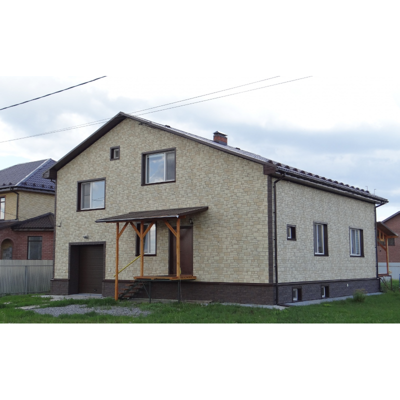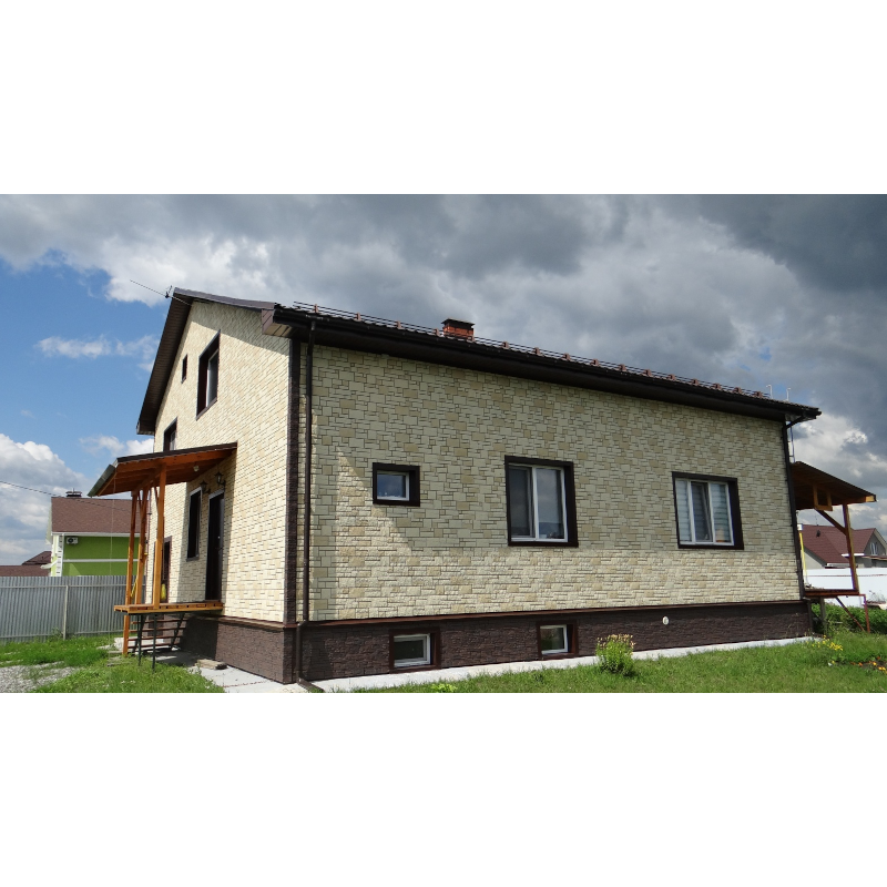 Фасадные панели могут использоваться как для оформления фасада целиком, так и для облицовки фундамента, выделения отдельных деталей.