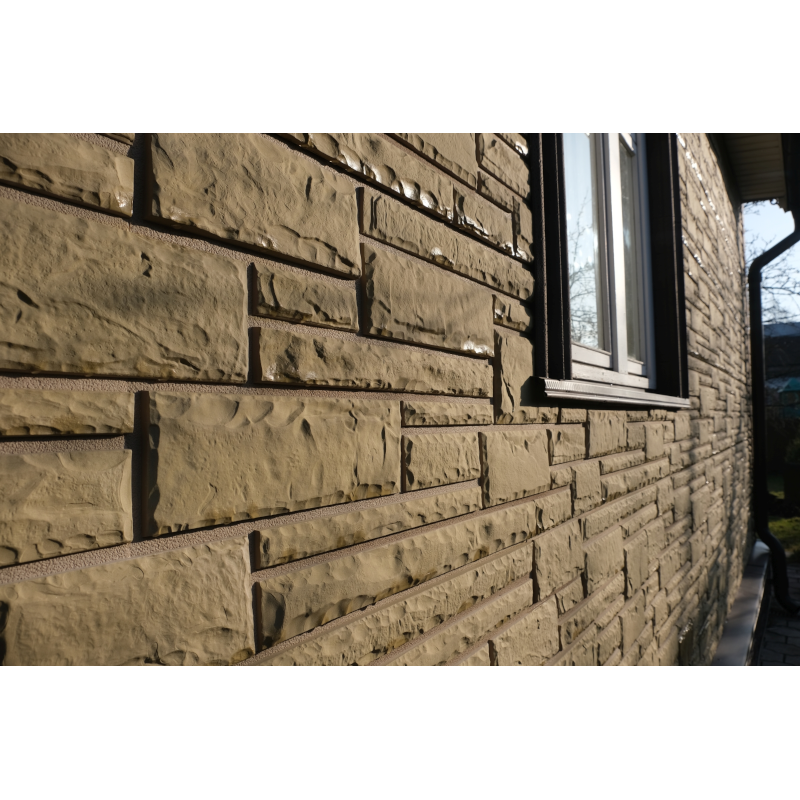 Фасадная панель под известняк с комбинацией из набора пластин разной величины коллекции Камень от Альта-Профиль. Панель изготовлена из полипропилена методом литья под давлением, имеет небольшой вес, поэтому не создает дополнительной нагрузки на несущие конструкции. Материал устойчив к грибку, плесени и коррозии. За счет ребер жесткости и увеличенной толщины (23 мм), панели устойчивы к механическим и температурным воздействиям, не деформируются. Многослойное окрашивание надежно защищает от УФ-лучей, обеспечивая сохранность цвета долгие годы.