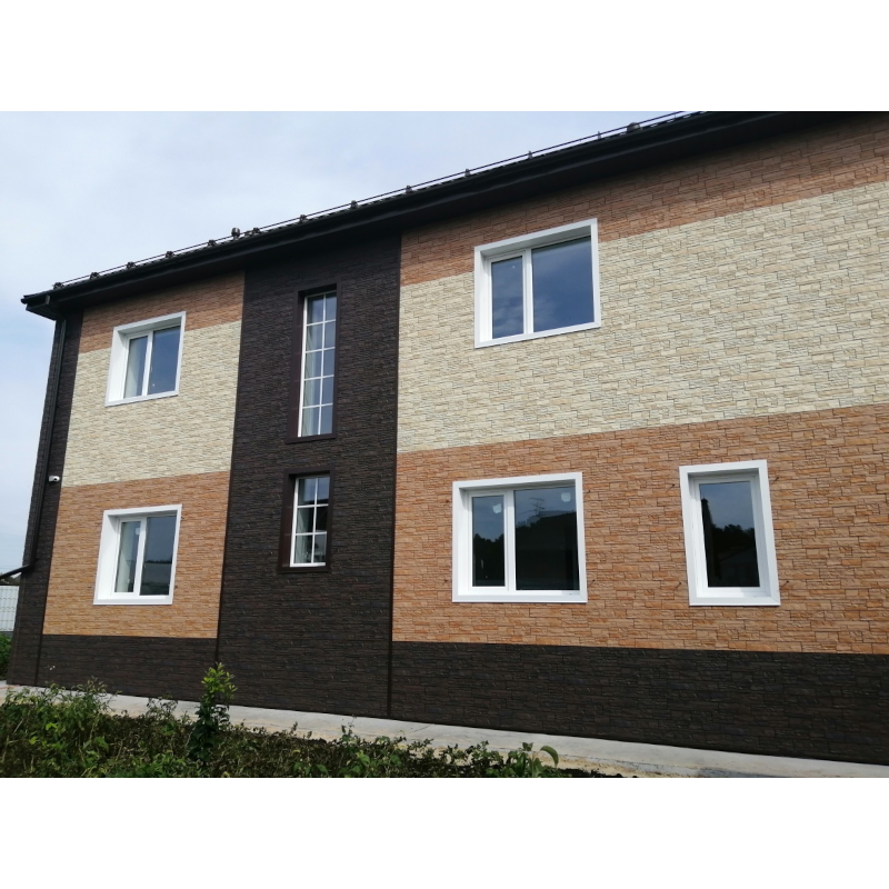 Фасадная панель с текстурой слоистого песчаника и имитацией натуральной каменной кладки из коллекции STEIN от Деке. Панель изготовлена из полипропилена методом литья под давлением, имеет небольшой вес, поэтому не создает дополнительной нагрузки на несущие конструкции. За счет специальной трехступенчатой системы окраски, материал невосприимчив к УФ-лучам и атмосферным осадкам. Конструкция панели усилена ребрами жесткости, что обеспечивает повышенную устойчивость к механическим нагрузкам. Панели легко и надежно скрепляются между собой, монтируются на обрешетку. Монтаж можно производить в любое время года, за исключением сильных морозов (не ниже -15°С)