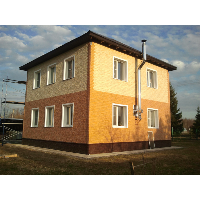Фасадные панели могут использоваться как для оформления фасада целиком, так и для облицовки фундамента, выделения отдельных деталей.