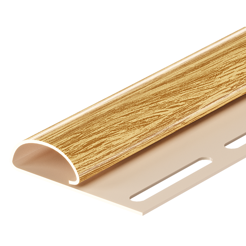 Виниловый финишный профиль под дерево серии LUX от Docke длиной 3 м, цвет Зрелый каштан. Применяется для крепления обрезанного по горизонтали края панелей сайдинга, может использоваться при закреплении верхнего ряда панелей, отделке оконных проемов, монтаже ветровой доски и т. п.