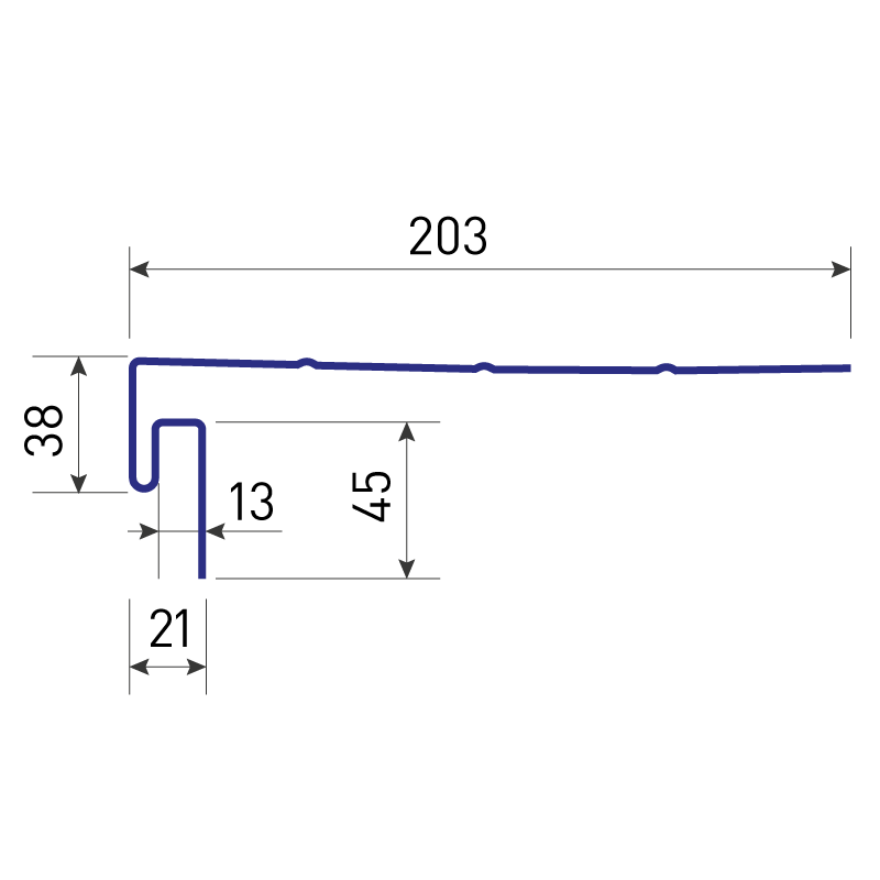 Универсальная виниловая J-фаска от Docke длиной 3 м, цвет Графит. Используется для отделки фронтонных, лобовых и карнизных досок.