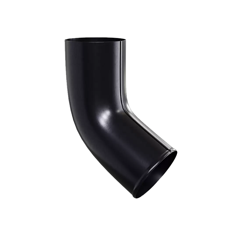 Колено сливное D100 мм 60° черное RAL9005 с покрытием PURMAN серии МП Престиж от Металл Профиль. Завершающий элемент водостока, устанавливается в водосточную трубу и служит для отвода потоков воды от стен и фундамента здания.
