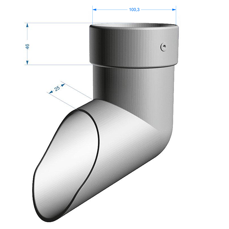 Колено сливное D100 мм цвета Графит серии LUX от производителя Docke. Завершающий элемент водостока, устанавливается на концах водосточных труб и служит для отвода воды от фасада строения на землю или в ливневую канализацию.