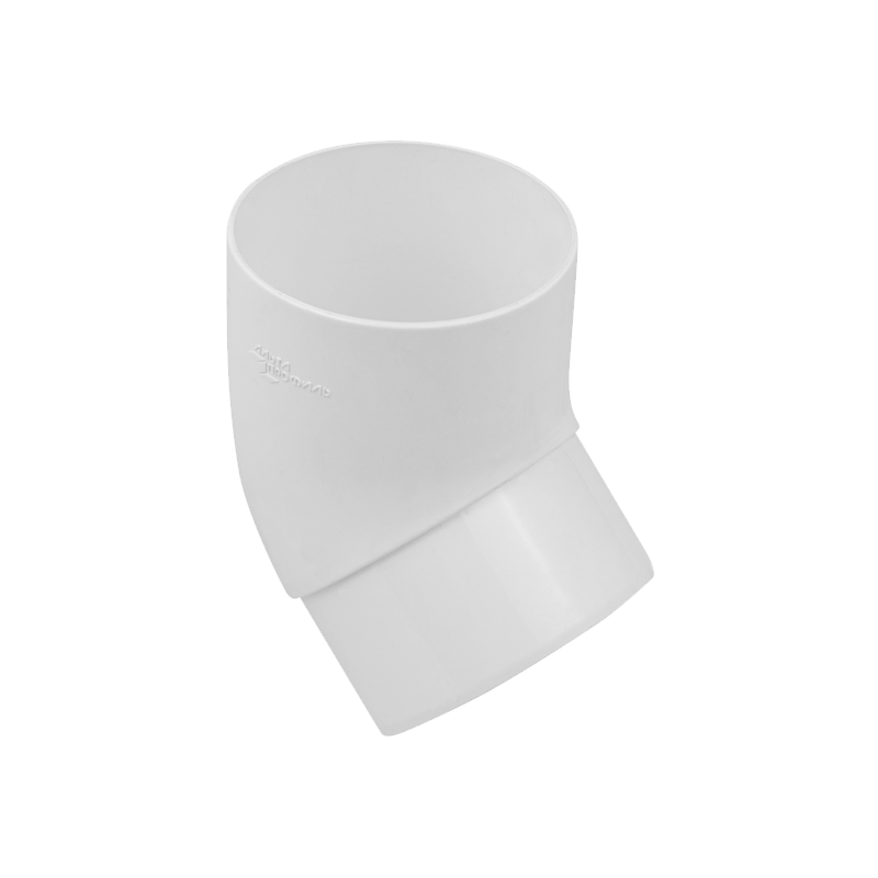 Колено трубы 45° ПВХ D74 мм белое серии Стандарт от Альта-Профиль. Элемент водосточной системы, применяется для отведения водосточной трубы от выпускной воронки, расположенной у края ската кровли, к стене, а также от выступающих элементов фасада.