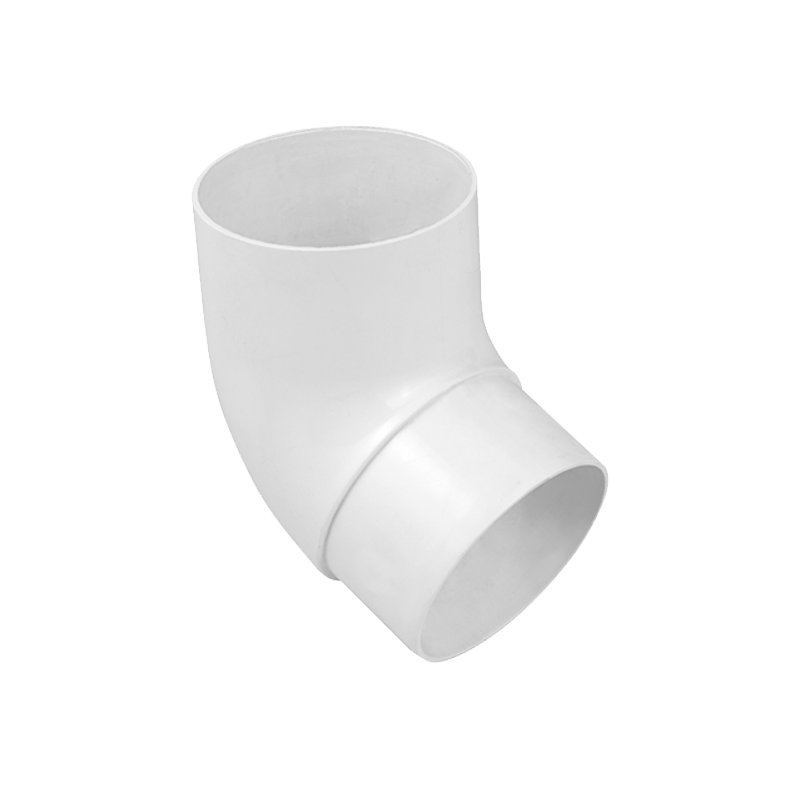 Колено трубы 67° ПВХ D74 мм белое серии Стандарт от Альта-Профиль. Элемент водосточной системы, применяется для отведения водосточной трубы от выпускной воронки, расположенной у края ската кровли, к стене, а также от выступающих элементов фасада.