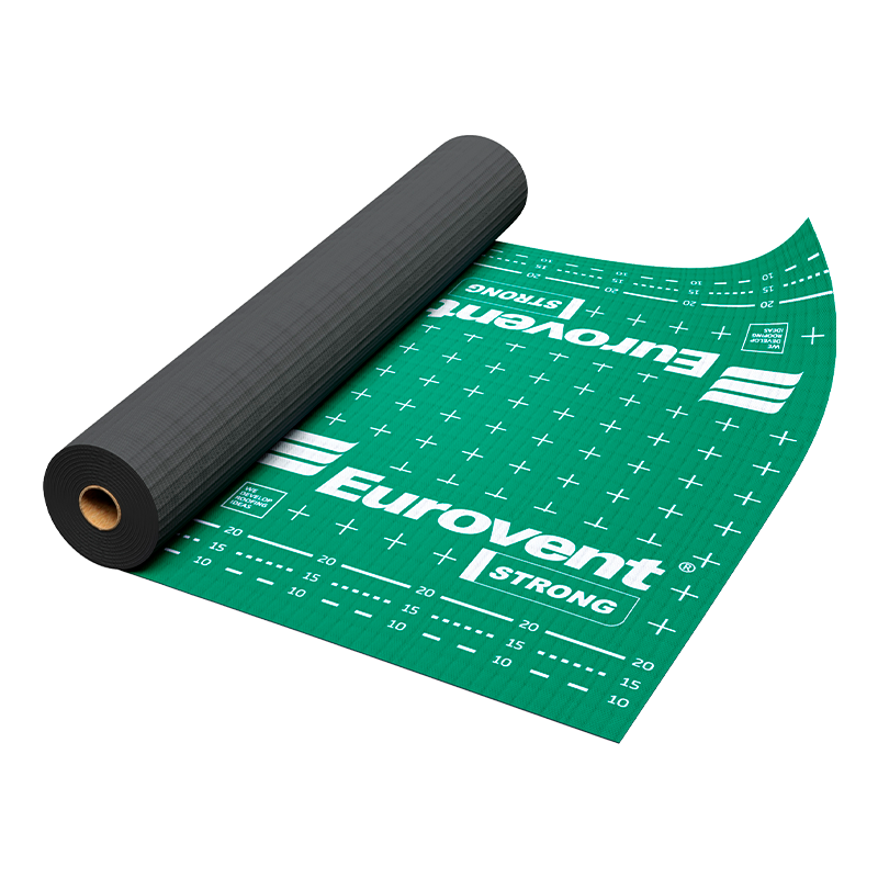 Четырехслойная кровельная мембрана Eurovent STRONG используется как гидро-ветрозащита на скатных, изолированных и вентилируемых кровлях, в т.ч. со сплошной обрешеткой. Водонепроницаемая, устойчива к УФ лучам, обладает высокой паропроницаемостью. Армирована сеткой из полиэтилена. Обладает высокой прочностью и имеет более высокое сопротивление разрыву.