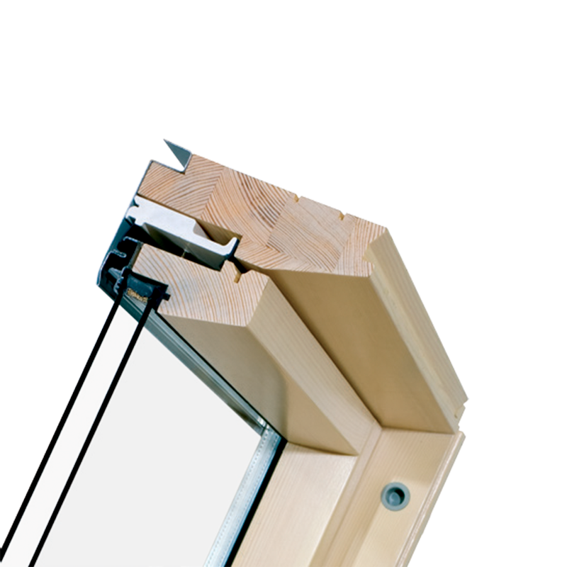 Среднеповоротное окно FTS произведено из высококачественной древесины сосны, пропитано антисептиком и покрыто двумя слоями полиакрилового лака на водной основе.