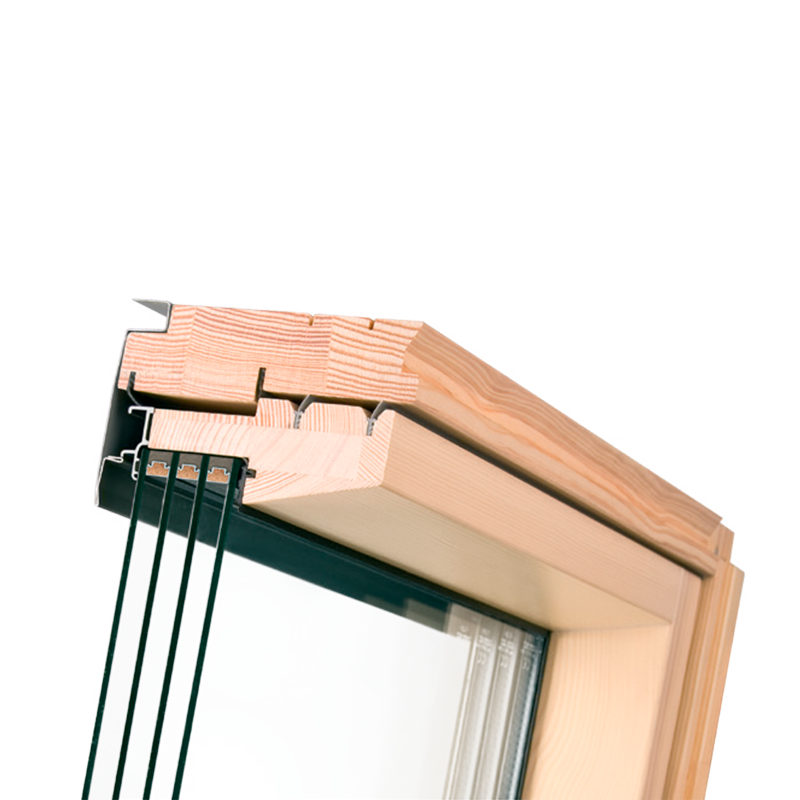 Среднеповоротное окно FTT произведено из высококачественной древесины сосны, пропитано антисептиком и покрыто двумя слоями полиакрилового лака на водной основе.