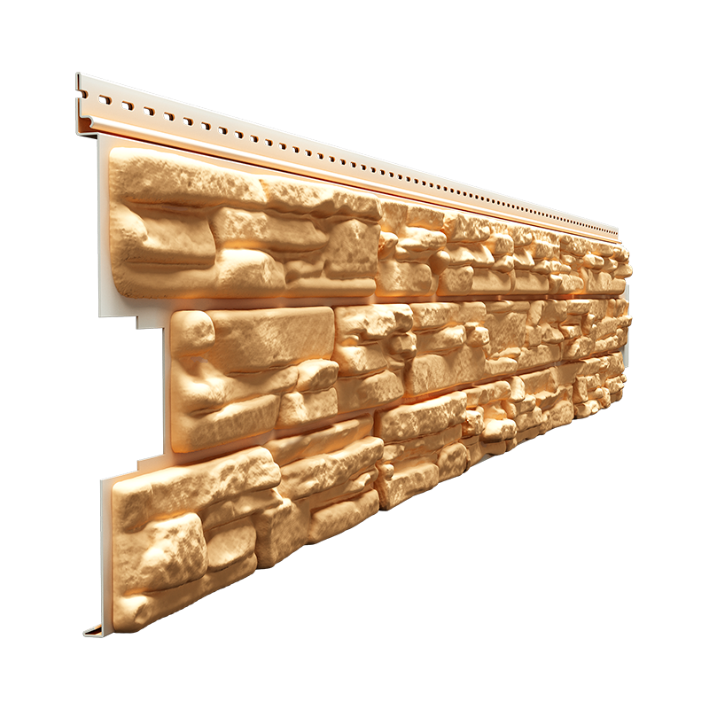 Виниловая фасадная панель с текстурой слоистого песчаника из коллекции ROCKY премиальной дизайнерской серии LUX от Деке. Панель имитирует фактуру слоистого песчаника с глубоким ярко выраженным рельефом, что позволяет ей выразительно смотреться на фасаде. Конструкция панели без сквозных отверстий на рабочей поверхности, это позволяет исключить попадание влаги внутрь фасада и предотвратить последующие гниение. Панель оснащена специальным замком, позволяющим легко и надежно скреплять панели между собой, что существенно упрощает монтаж. Фасадная панель ROCKY цвета Пекан позволят структурировать фасад, теплые коричневые тона зададут четкую грань между конструктивными элементами здания или же придадут статичность общему архитектурному облику. Гарантия производителя 50 лет на отсутствие деформаций вследствие воздействия климатических факторов и 7 лет на стабильность цвета! Купить фасадную панель под слоистый песчаник Docke LUX Rocky Кокос по выгодной цене вы можете в нашем интернет-магазине Удачная покупка. Наши менеджеры помогут с выбором и рассчитают необходимое количество материала.