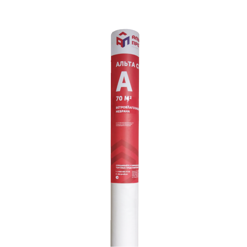 Паропроницаемая ветро-влагозащита высокой плотности — 75 г/м². Полноформатный рулон 70 м². Защищает конструкции от ветра и влаги, выводит водяной пар из утеплителя. Применяется на кровлях и фасадах снаружи здания.