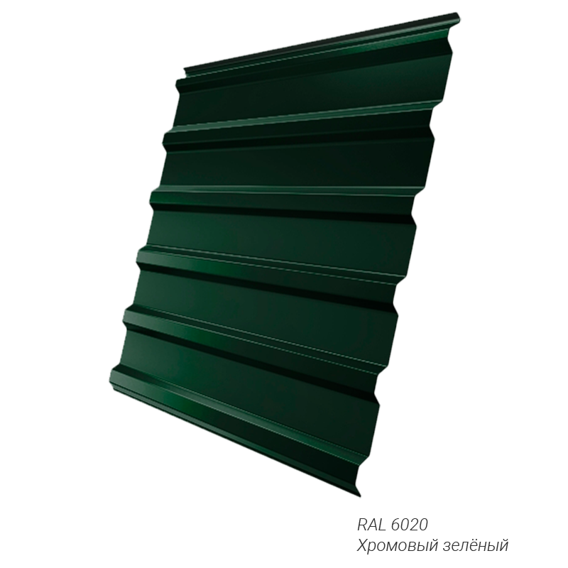 Профнастил имеет профиль C20R (высотой 20 мм). Толщина стали составляет 0,5 мм. Колеровка — заказная. Можно подобрать идеальный цвет для любого проекта.