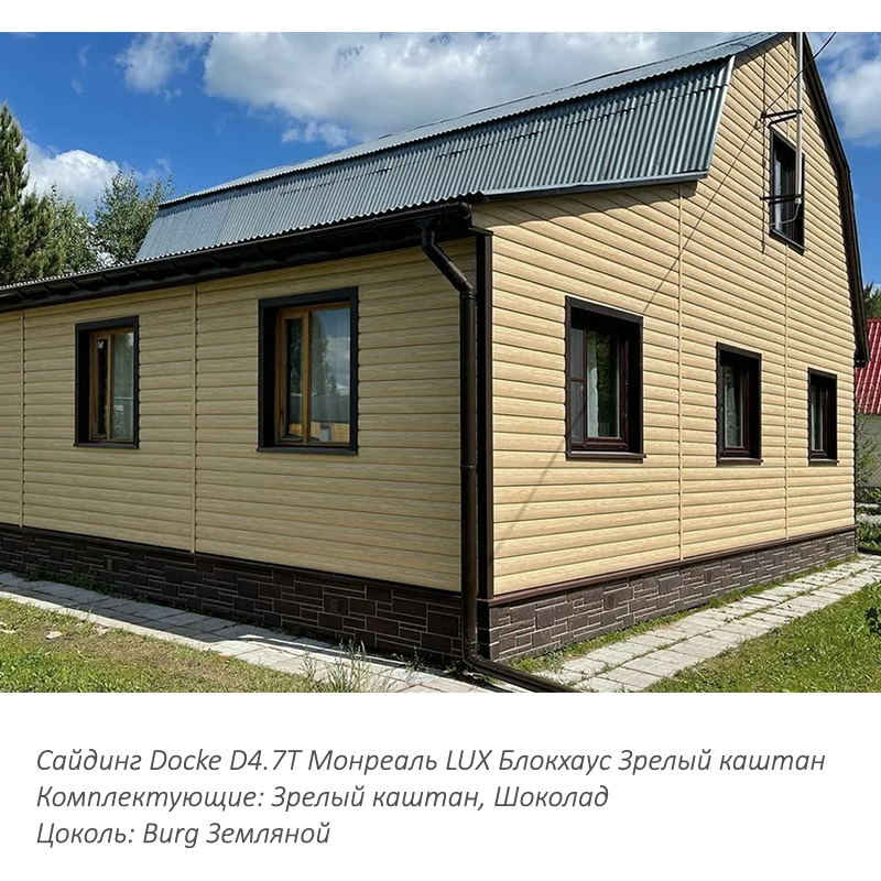 При производстве сайдинга и комплектующих LUX D4,7T (профиль Блокхаус) используются уникальные технологии нанесения краски. Внешняя поверхность цвета Зрелый каштан получается как у натурального дерева.