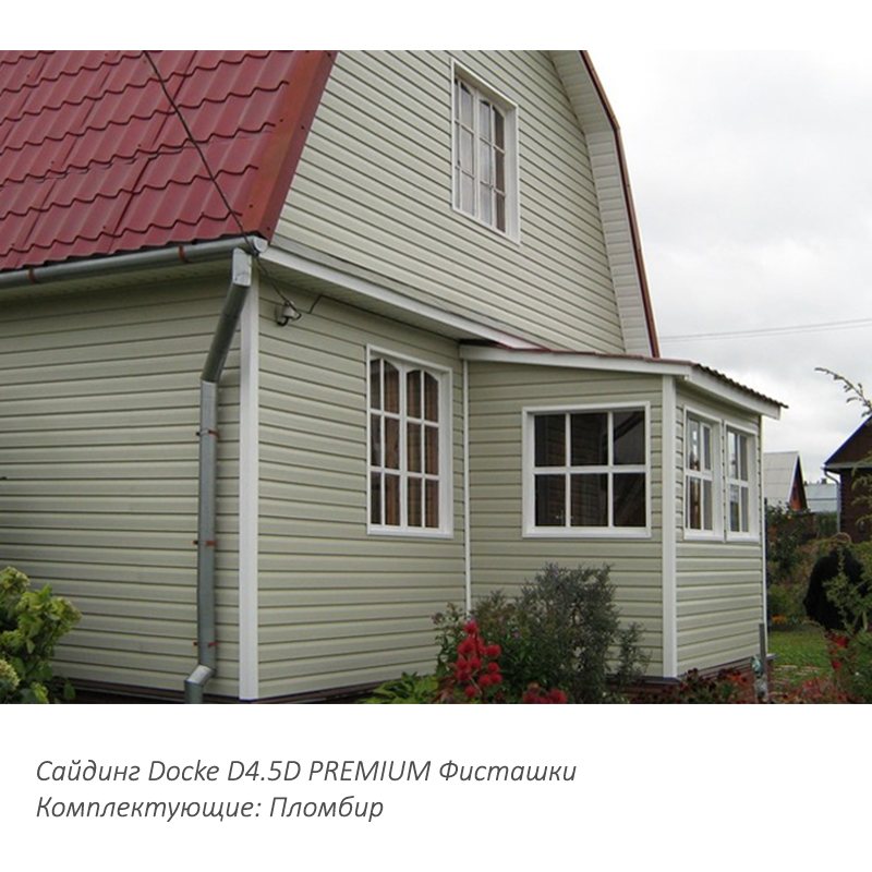 Сайдинг Docke PREMIUM D4,5D Фисташки 3600 мм — выбор тех, кто хочет создать эстетичное и практичное оформление фасада.