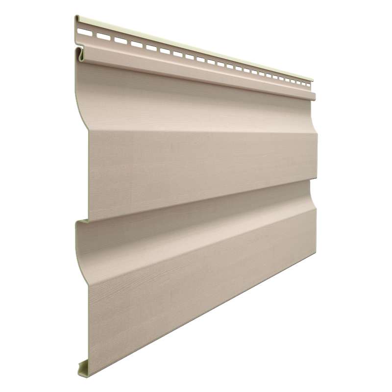 Виниловый сайдинг Docke коллекции PREMIUM D4.5D Крем-брюле – это эстетичное, надежное и недорогое решение отделки фасада. Он имеет небольшой вес, легко монтируется и прост в уходе. Производитель оснастил профиль «корабельный брус» антиураганным замком, повышающим его устойчивость к ветровым нагрузкам.