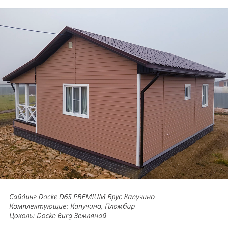 Сайдинг Docke PREMIUM D6S Капучино 3600 мм — выбор тех, кто хочет создать эстетичное и практичное оформление фасада.