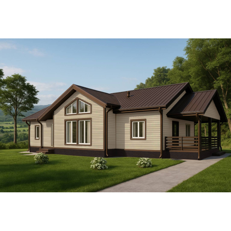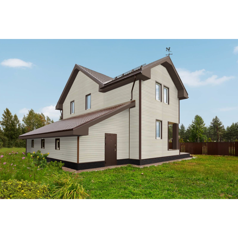 Универсальный фасадный материал, который не создаст проблем с сочетаемостью цветов и будет всегда выгодно смотреться для любого архитектурного стиля. Бежевый цвет можно охарактеризовать как немаркий и приятный.