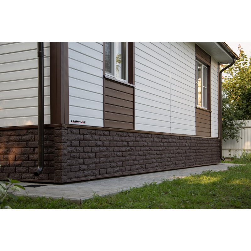 Белый сайдинг Double-брус (коллекция Classic винил) выглядит как фасад из деревянного клееного бруса благодаря улучшенной формуле окрашивания и точно переданной текстуре древесины. Новинка 2024 от Гранд Лайн, панель увеличенной ширины (полная ширина 324 мм, рабочая 291 мм) может монтироваться как горизонтально, так и вертикально. Все панели серии Double-брус монтируются с использованием стандартных аксессуаров к сайдингу Grand Line из виниловой или акриловой коллекции.