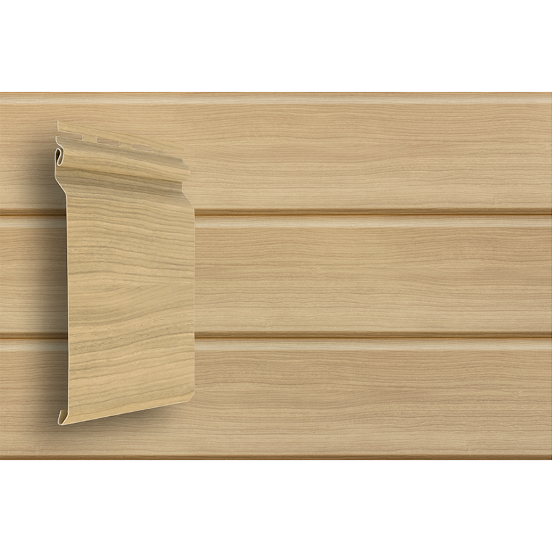 Панель сайдинга Natural-Брус Tundra выполнена в форме клееного бруса и имеет рельефную фактуру поверхности с волокнами и сучками точно имитирующую рисунок дерева. Сайдинг данной серии имеет повышенную устойчивость к выгоранию. Палитра коллекции представлена в оттенках натуральных пород древесины.