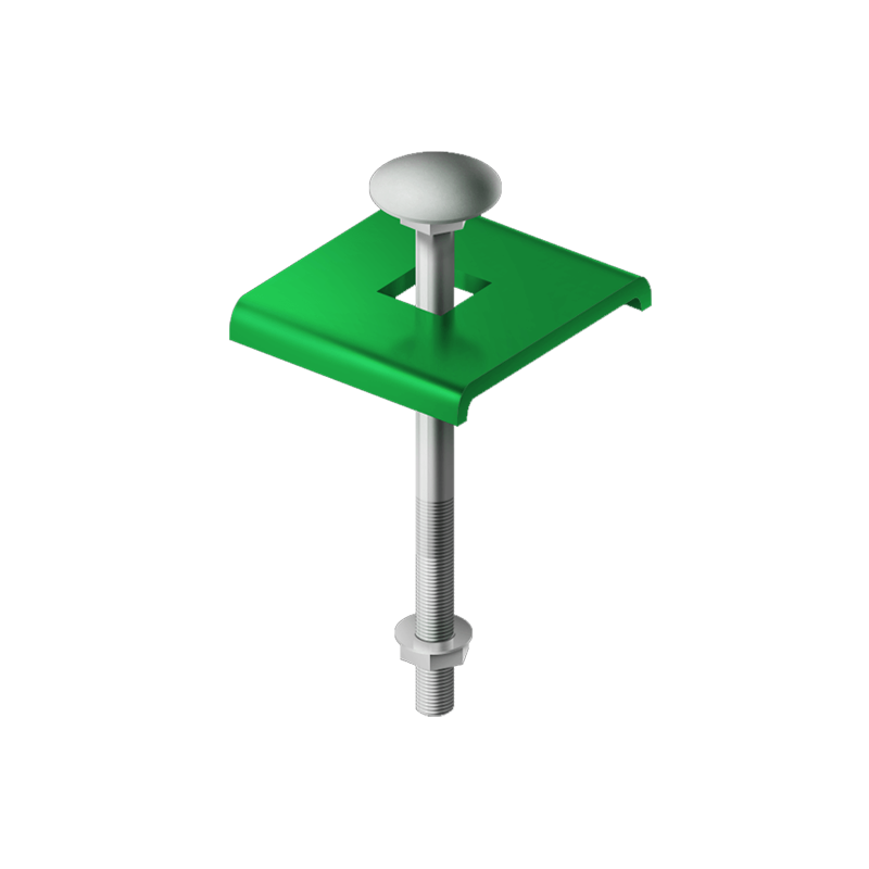 Универсальная оцинкованная скоба с отверстием, один из вариантов крепления сварной сетки к столбу или к другой опоре. Комплектуется болтом и гайкой M6. Загнутые края позволяют надежно зафиксировать сетку к каркасу ограждения. Применяется при монтаже со сверлением опорной конструкции. Скоба окрашена полимерно-порошковым способом в цвет RAL6005 Зеленый мох.