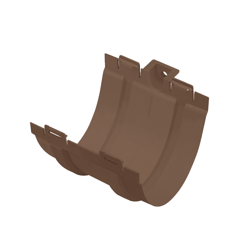Соединитель желоба ПВХ D115 мм коричневый серии Стандарт от Альта-Профиль. Используется для соединения водосточных желобов в единую систему.
