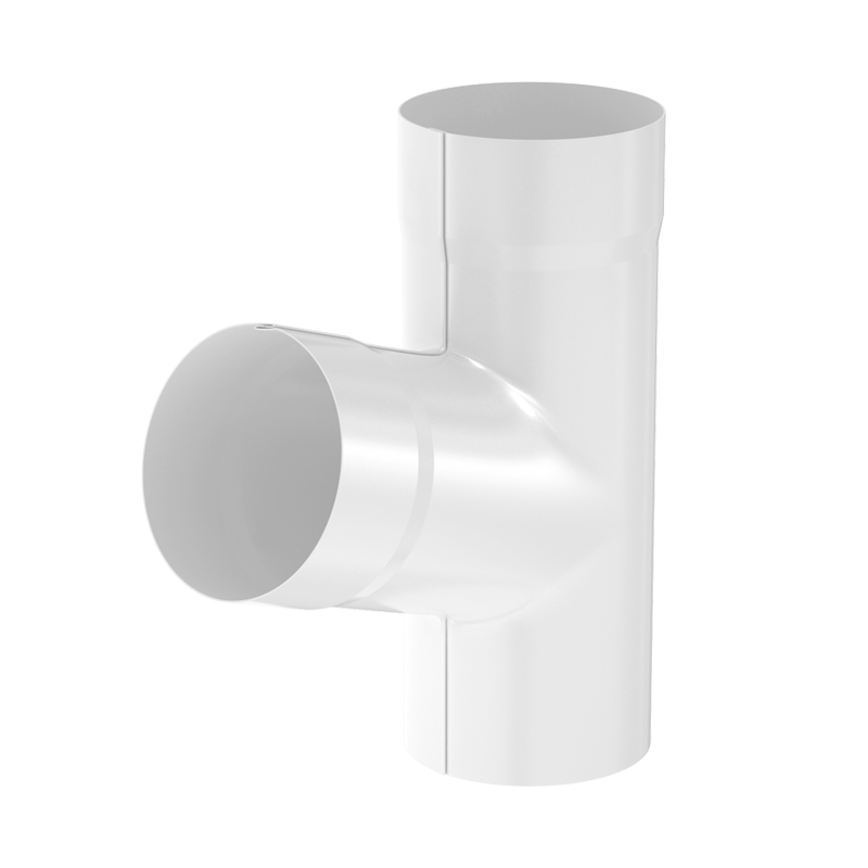 Тройник трубы 72° D100 мм RR20 Мраморно-белый с покрытием Полиуретан (PUR) от производителя Аквасистем. Применяется для соединения двух водосточных труб в один общий сток.