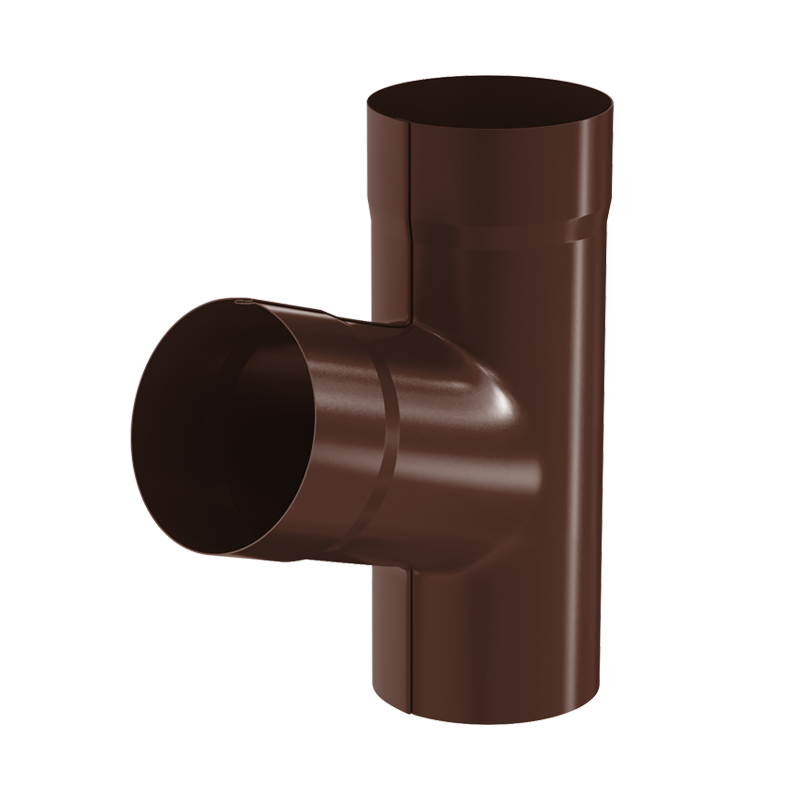Тройник трубы 72° D90 мм RAL8017 Коричневый с покрытием Полиуретан (PUR) от производителя Аквасистем. Применяется для соединения двух водосточных труб в один общий сток.