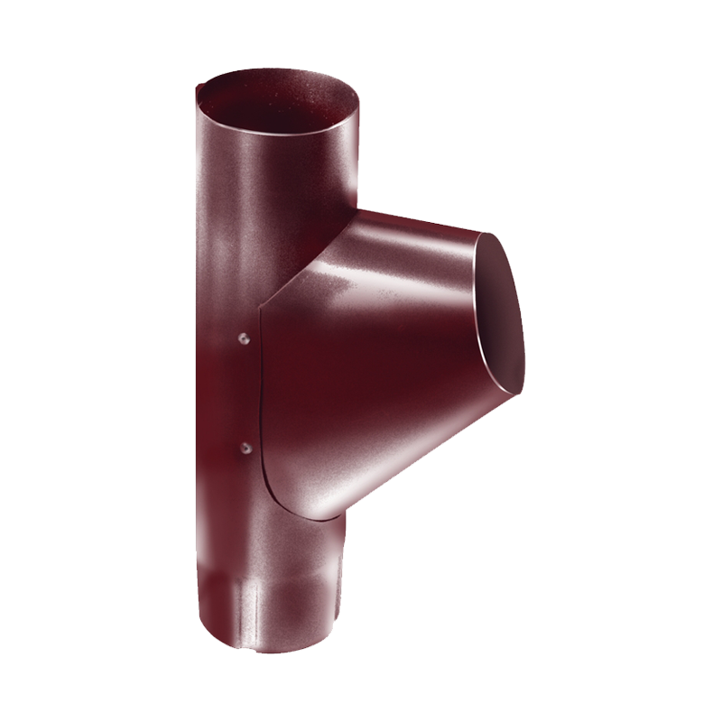 Тройник трубы D90 мм винно-красный RAL3005 с покрытием Granite Double от Гранд Лайн. Применяется для соединения двух водосточных труб в один общий сток.