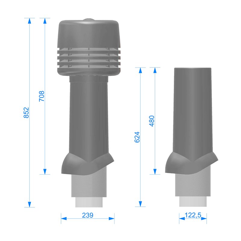 Труба вентиляционного выхода Ø125. Высота трубы с колпаком 700 мм от кровельного покрытия, 480 мм без колпака. Устанавливается на кровле в качестве завершающего элемента системы вентиляции жилого дома. Для усиления тяги и защиты вентиляционной системы от попадания в нее осадков и грязи рекомендуем дополнять венттрубу колпаком. Утепление кожуха — пенополиуретан 22 мм. Колпак для трубы и проходной элемент по типу кровельного покрытия приобретаются отдельно! Температурный режим эксплуатации -40°…+80°C. Изготовлена из стойкого к УФ-излучению полипропилена. Крепеж в цвет изделия в комплекте.