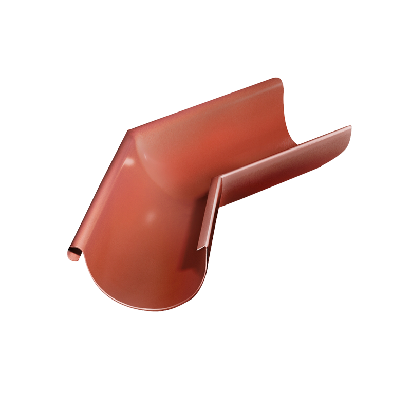 Угол желоба внешний D125 мм 135° терракотовый RAL8004 с покрытием Granite Double от Гранд Лайн. Предназначен для соединения водосточных желобов под углом 135 градусов, для смены направления движения воды в стоке. Обеспечивает непрерывность линии водостока. Устанавливается на наружных/выступающих углах здания.