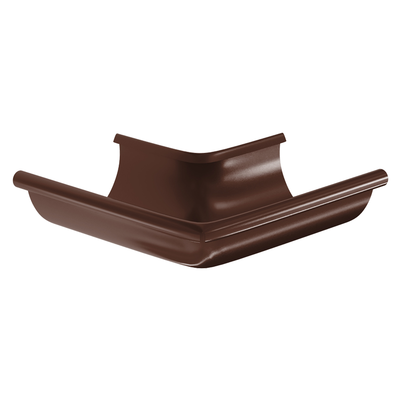 Угол желоба наружный 90° D125 мм RAL8017 Коричневый с покрытием Полиуретан (PUR) от производителя Аквасистем. Предназначен для соединения водосточных желобов под углом 90 градусов, для смены направления движения воды в стоке. Обеспечивает непрерывность линии водостока. Устанавливается на наружных/выступающих углах здания.