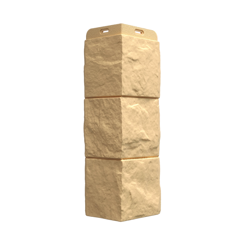 Внешний угол для фасадной панели под дикий скальный тесаный камень Docke FELS длиной 425 мм. Предназначен для оформления наружных углов и отдельных архитектурных элементов фасада. Скрывает места угловых стыков фасадных панелей, защищает от проникновения влаги. Производятся углы из полипропилена и идентичны по структуре и цвету фасадным панелям Docke FELS.