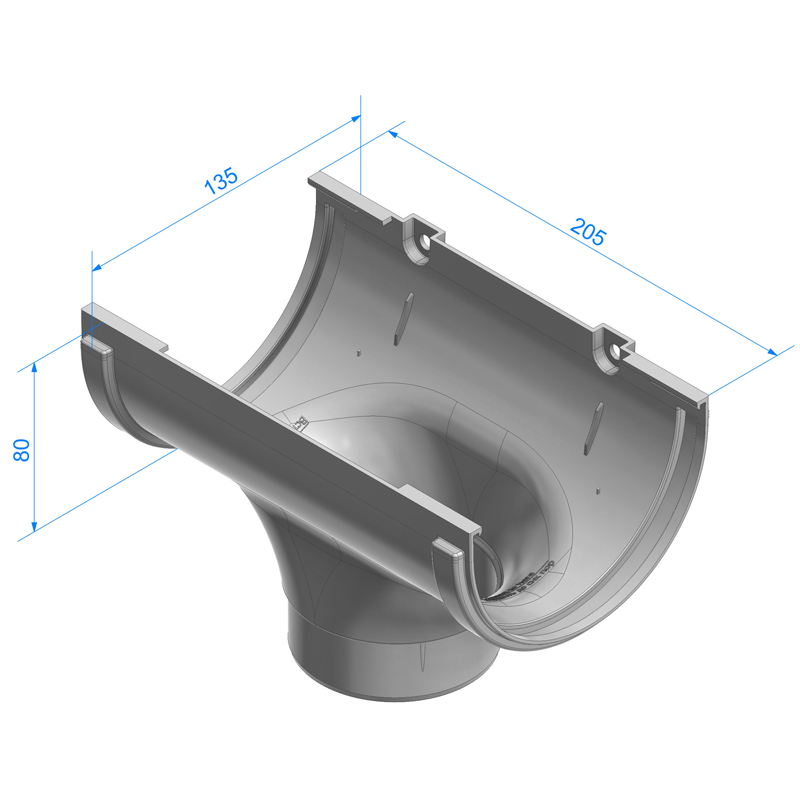 На всех соединительных элементах присутствуют пластиковые выступы — ограничители монтажа, что существенно облегчает монтаж и позволяет избежать ошибок при сборке. Фитинги для желобов снабжены резиновыми уплотнителями, которые обеспечивают эффективное и плотное соединение и придают герметичность водосточной системе.
