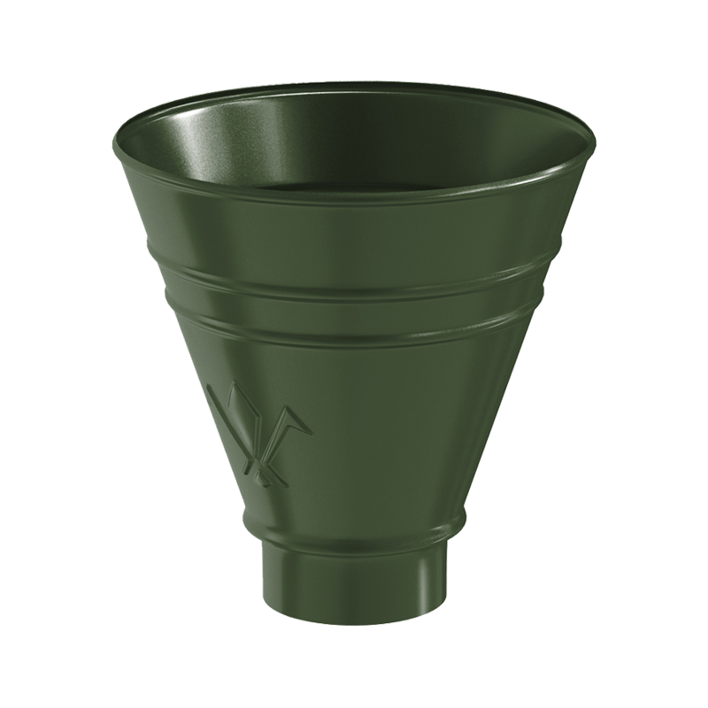 Воронка водосборная D90 мм RR11 Темно-оливковая с покрытием Полиуретан (PUR) от производителя Аквасистем. Элемент водосточной системы, применяется для сбора воды со сложных форм крыш, фальцевых кровель, в тех случаях, когда сток не организован посредством желоба.
