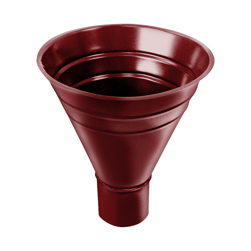 Воронка водосборная D125/90 мм коричнево-красная RAL3011 с покрытием Granite Double от Гранд Лайн. Элемент водосточной системы, применяется для сбора воды со сложных форм крыш, фальцевых кровель, в тех случаях, когда сток не организован посредством желоба.