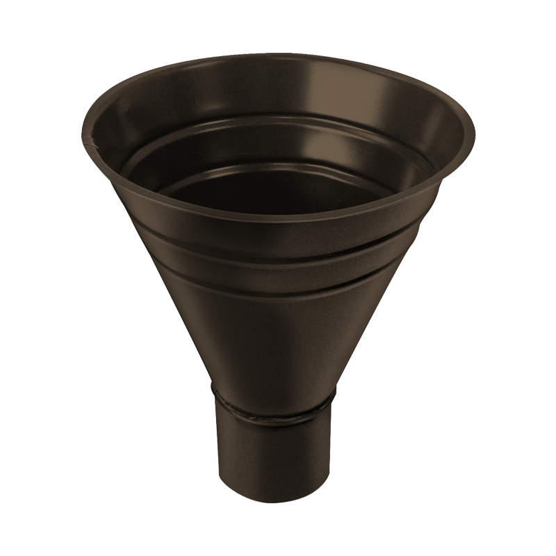 Воронка водосборная D150/100 мм коричневая RR32 с покрытием Granite Double от Гранд Лайн. Элемент водосточной системы, применяется для сбора воды со сложных форм крыш, фальцевых кровель, в тех случаях, когда сток не организован посредством желоба. Металлический водосток круглого сечения D150/100 с покрытием Granite Double от Гранд Лайн. Водосточная система Гранд Лайн D150/100 обладает большой пропускной способностью и подходит для кровель большой площади. Достаточно одной воронки на 15 п.м. карниза, что позволяет существенно сократить расходы на трубы и колена. Водосточная система изготовлена из холоднокатаной горячеоцинкованной стали толщиной от 0,5 мм и произведена по ведущим европейским технологиям. Все элементы водостока имеют покрытие на основе полиуретана с внешней и внутренней стороны, что значительно повышает долговечность системы. Покрытие Granite отличается повышенной стойкостью к УФ-лучам, агрессивным химическим веществам, механическим повреждениям и коррозии, превосходит по своим параметрам покрытия из полиэстера и пластизола. Водосток обладает высокой цветостойкостью, не выгорает. Устойчив к большим температурным перепадам ( -60 до +120°C). Водосток Гранд Лайн служит для организации стока осадков с поверхности кровли и отвода их на грунт или систему ливневой канализации. При организованном стоке воды сохраняется привлекательный вид фасада, а фундамент защищен от преждевременного разрушения. Купить воронку водосборную D150/100 мм коричневую RR32 с покрытием Granite Double от производителя Гранд Лайн по низкой цене вы можете в нашем интернет-магазине Удачная покупка. Наши менеджеры помогут с выбором и рассчитают необходимое количество элементов водостока.