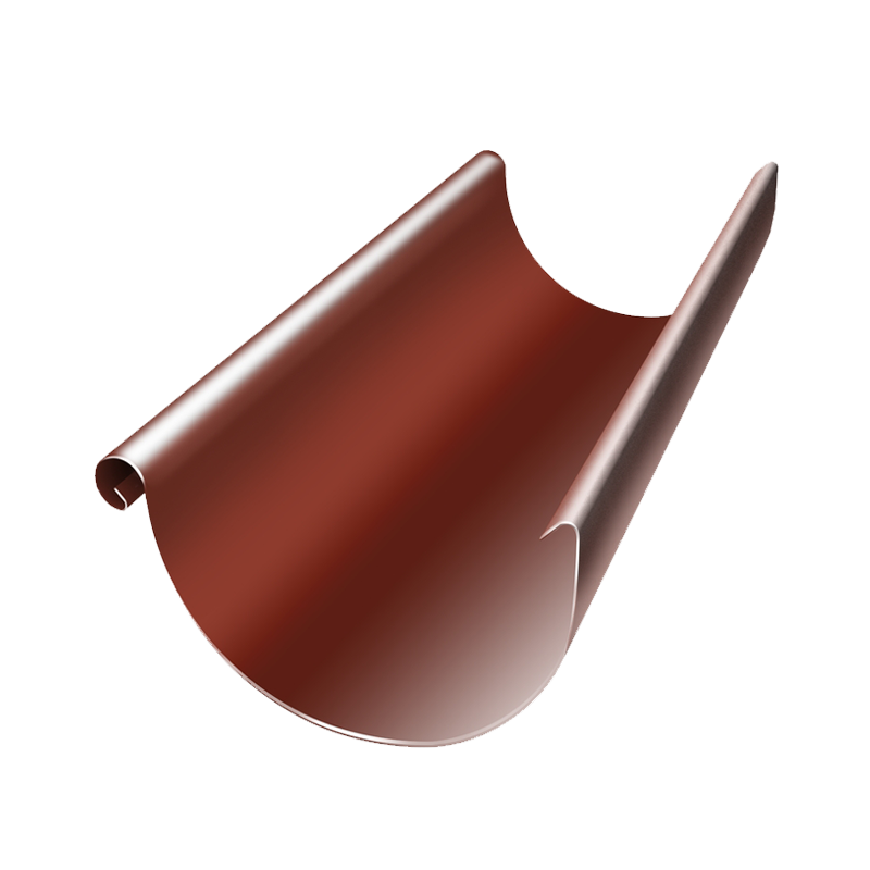 Желоб водосточный D125 мм длиной 3 м терракотовый RAL8004 с покрытием Granite Double от Гранд Лайн. Является основным элементом водосточной системы, крепиться под скат кровли. Собирает и направляет дождевую воду с крыши строения в водосточную трубу.